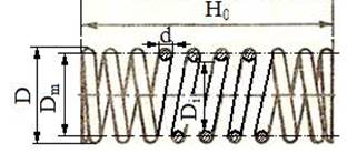 a b c Semnificații notații: d – diametrul spirei (sârmă rotundă); b, h – lățimea și grosimea spirei (sârmă dreptunghiulară), Dm – diametrul mediu; Di – diametrul interior; De – diametrul exterior; H0 – lungimea arculului nedeformat.
