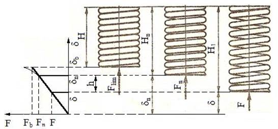 a Semnificații notații: δ1, H1 – săgeata, respectiv lungimea arcului montat pretensionat cu forţa F1; δn, Hn – săgeata, respectiv lungimea arcului la sarcina maximă Fn; δb, Hb – săgeata, respectiv lungimea arcului la blocare cu sarcina Fb; δlim – săgeata maximă a arcului la sarcina limită Flim; h – cursa arcului. Relații de calcul Săgeata