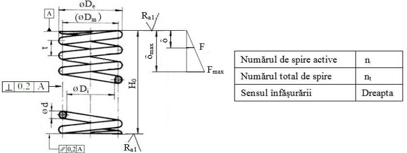 total de spire, nt = 13,5; Obs. Desenul de execuție conține și caracteristica arcului care trebuie verificată experimental.