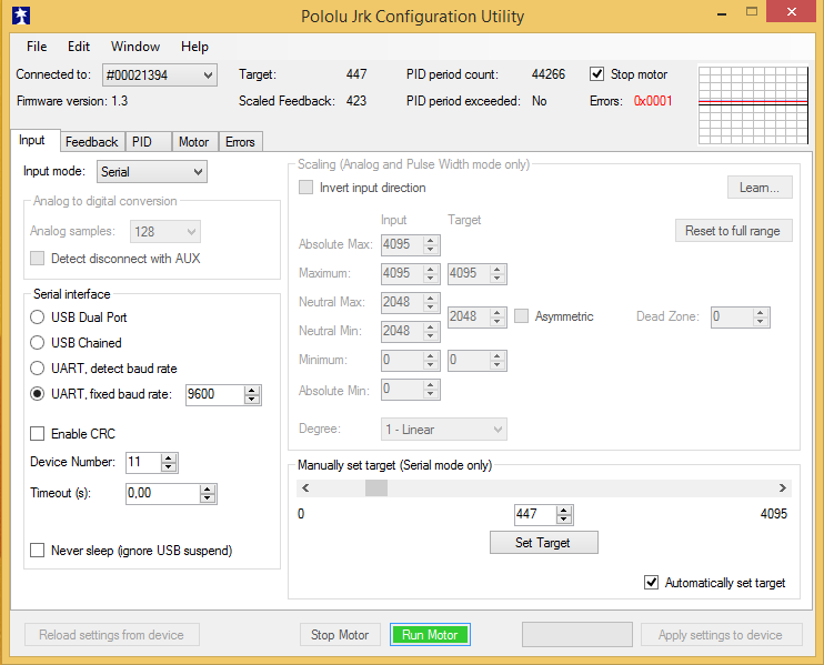 Configurarea blocului de comandă și control a servomotorului de încărcare Lansarea aplicației ż
