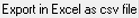 pot fi salvate în format excel (csv) prin activarea în fereastra |
