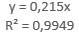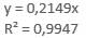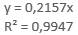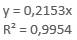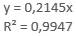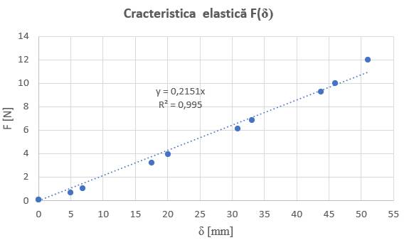 Analiza corelației estimării prin regresie liniară a variabilelor δi și Fi Pornind de la considerentele teoretice care demonstrează dependența liniară a forțelor de încărcare/descărcare Fi și deplasărilor (săgeților) δi, în continuare, se prezintă studiile corelației prin regresie liniară conform Ghid.Ap.2.20. În fig. b se evidențiază punctele asociate măsurării precum și linia de regresie (caracteristica elastică) definită de relația y = 0,2151x în care x reprezintă deplasarea (săgeta) δ și y forța F. Comarând această relație cu relația teoretică a caracteristicii elastice (v. subcap. B.1) se evidențiază valoarea rigidității obținută prin măsurare, k = 0,2151 N/mm; în plus, în fig. b se evidențiază valoarea coeficientului de determinare, R2.