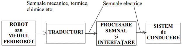 măsurarea (evaluarea) unor parametri intrinseci ai robotului, legați de