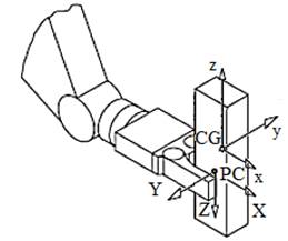 și caracteristici ale prehensoarelor Studiile privind prehensiunea unui obiect se realizează asociind obiectului de manipulat un sistem de coordonate cartezian drept (xzy), de obicei, cu centrul în centrul de greutate (CG) al acestuia (fig. 1,a). Sistemul de coordonate (XYZ) asociat punctului caracteristic (PC) al dispozitivului de prehensiune se consideră ca sistem de referință în vederea stabilirii poziției și orientării obiectului de prehensat.