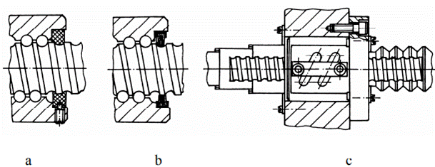 Principalele dezavantaje ale mecanismelor șurub-piuliță cu filete cu frecare de alunecare (fig. 1,b) din sistemele mecanice ale produselor mecatronice constau în impreciziile cinematice - consecință a abaterilor de execuție, jocurilor inițiale și mai ales datorită uzurilor - și în consumul energetic intern mărit (η < 0,5 pentru funcționarea cu autofrânare). Diminuarea acestor dezavantaje se realizează prin micșorarea jocurilor și creșterea randamentului, prin folosirea cuplelor elicoidale cu frecare de rostogolire (fig. 2) (η > 0,8 pentru funcționarea cu autofrânare).