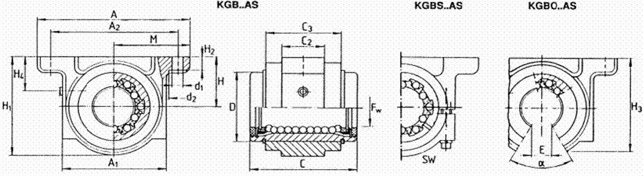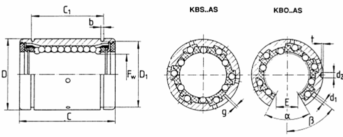 pentru bucșele cu bile recirculabile închise și varianta KGBO, pentru bucșele