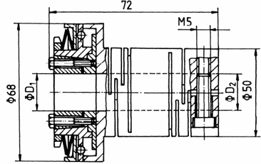 radiale Pentru protecția subansamblelor mecanice complexe la suprasarcini, se pot utiliza cuplaje de siguranță sau combinate. În fig. 7 se prezintă cuplajul combinat realizat de firma VMA-NC Meβ und Antriebstechnik GmbH, compus dintr-un cuplaj flexibil monobloc cu fante radiale, înseriat cu un cuplaj de siguranță cu bile, cu momentul de decuplare reglabil prin deformarea unui set de arcuri disc.