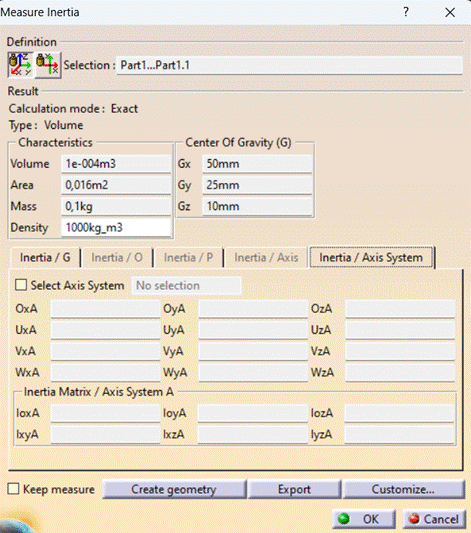 Determinarea în CATIA a valorilor parametrilor inerțiali caracteristici mecanici ai Obiectului de manipulat (OM) și ai prehensorului (P) |