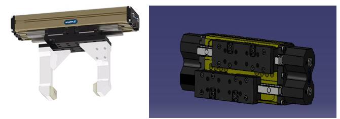 modul de pivotare electric, cu 2 degete; ghidaje cu role în cruce; unitate
