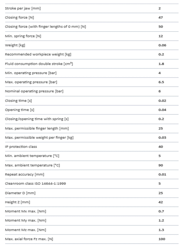 Tab. 2 Dispozitive de prehensiune cu bacuri paralele, de catalog