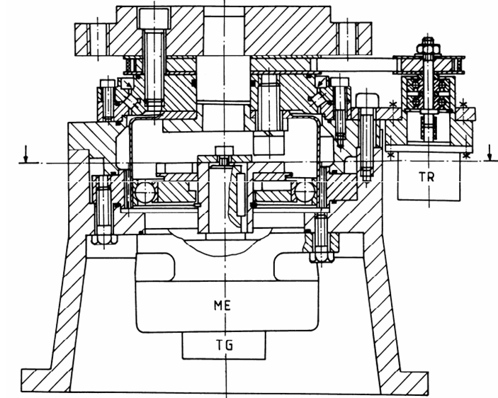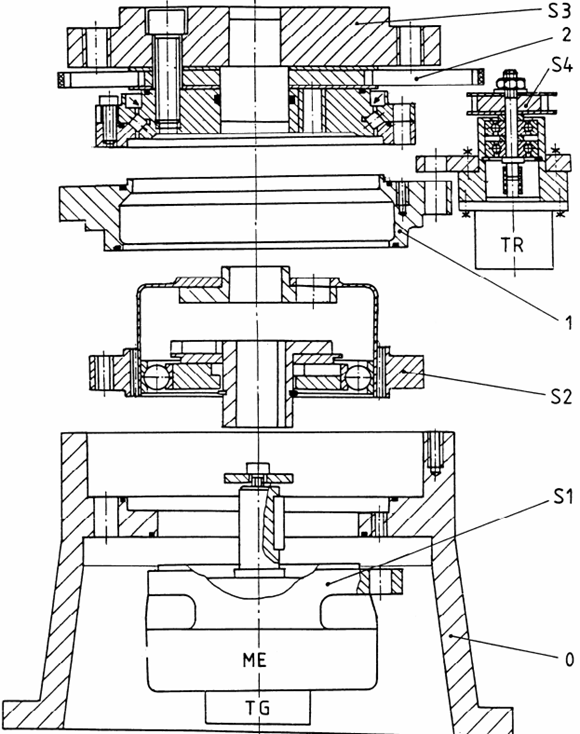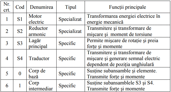 Fig. 1 Soluția constructivă a modulului de rotație În tab. 1 se prezintă sintetic subansamblele și elementele constructive componente ale ansamblului modulului de translație, cu schema bloc prezentată în fig. 2, cu precizarea denumirii, tipului și a funcțiilor principale ale acestora. Tab. 1 Subansamble și elemente constructive