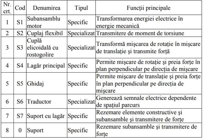 Fig. 1 Soluția constructivă a modulului de translație În tab. 1 se prezintă sintetic subansamblele și elementele constructive componente ale ansamblului modulului de translație, cu schema bloc prezentată în fig. 2, cu precizarea denumirii, tipului și a funcțiilor principale ale acestora. Tab. 1 Subansamble și elemente constructive