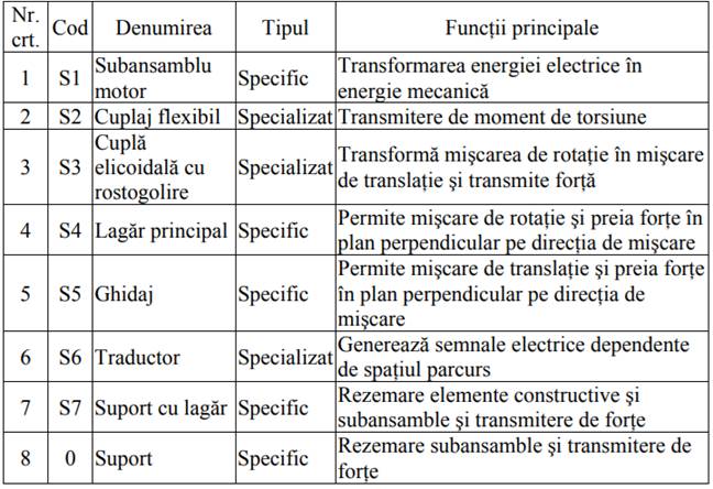 Fig. 2 Subansamblele și elementele constructive ale ansamblului |
