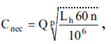 unde, Q = FX [N] reprezintă forța axială din cuplă; Lh [ore] durata de funcționare în ore și ținând cont de relația legii vitezei (v. mai sus) se obține turația în [rot/min],