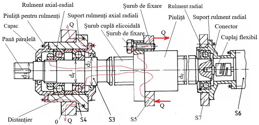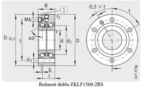 De introdus desene (3 variante) Tipul rulmenților: axial-radiali cu bile pentru șuruburi cu bile. Alegerea dimensiunilor rulmenților (Anexa.PT.2) se face ținând cont de condiția dr ≈ d0, unde d0 este diametrul căii de rulare a șurubului Exemple