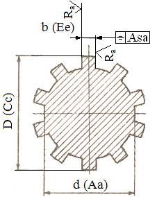de poziţie de simetrie ale canelurilor din arbore/butuc, Asa = 0,02