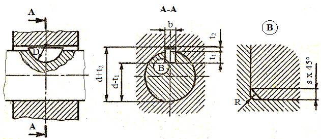 constructivă a asamblării cu penă disc în secţiune axială şi transversală |