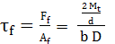 unde, τat = 15...45 MPa reprezintă tensiunea admisibilă convenţională la torsiune (ţine cont şi de existenţa solicitării de încovoiere) şi βk = 2...4, factorul concentratorului de tensiuni (pentru calculul la solicitări variabile, de oboseală); în cazul solicitărilor cvasistatice se consideră, βk = 1...2 Diametrul arborelui în zona penei, din această condiţie (rel. APP-T.8.1.2.8.2), devine, d ≥