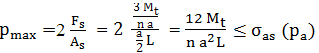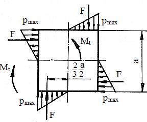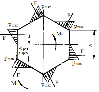 de torsiune, a [mm] - lungimea laturii profilului şi n – numărul de feţe ale asamblării (n = 3, asamblare cu profil triunghiular; n = 4, asamblare cu profil pătrat; n = 6, asamblare cu profil hexagonal). Condiţia de rezistenţă la strivire a asamblării