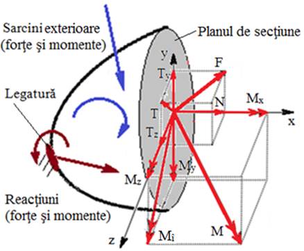 Solicitări posibile: axială excentrică, încovoiere oblică, axială (întindere sau compresiune) şi încovoiere; forfecare cu torsiune (răsucire) |