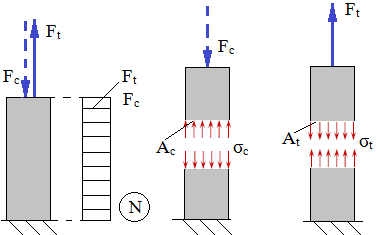 Ipoteze de calcul: - presiunea pe suprafaţa de contact se consideră uniform distribuită; - forţa se aplică perpendicular pe planul de contact Condiţia de echilibru pe direcţia forţei exterioare: