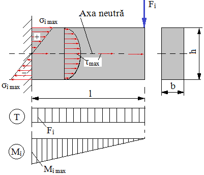 σî max [MPa] – tensiunea de încovoiere maximă, din relaţia lui Navier; τ max [MPa] – tensiunea de forfecare maximă, din relaţia lui Juravski; A = b h [mm2] – aria secţiunii barei; σaî [MPa] – tensiunea admisibilă de încovoiere; Mî cap [MPa] – momentul de încovoiere capabil |