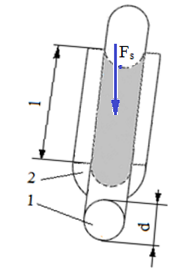unde, As = d l este aria convenţională de strivire a proiecţiei suprafeţei de contact în direcţie axială; σas = min(σas1, σas2) cu σas1 şi σas2 tensiunile admisibile la strivire ale materialelor corpurilor 1 şi respectiv, 2 sau σas = pa [MPa], presiunea admisibilă a peliculei de lubrifiant. |