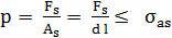 unde, Fs este forţa exterioară, p - presiunea pe suprafaţa de contact, As – aria suprafeţei de contact Relaţii de calcul: - de verificare,