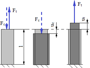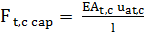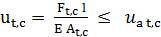 Ft,c [N] – forţa de tracţiune, compresiune; At,c [mm2] – aria secţiunii barei solicitată la tracţiune, compresiune; ut,c [mm] – deplasarea (săgeta) axială; uat,c [MPa] – deplasarea (săgeta) axială admisibilă la tracţiune, compresiune; Ft,c cap [N] – forţa de tracţiune, compresiune capabilă din considerente de rigiditate; E [MPa] – modulul de elasticitate longitudinal al materialului; EAt,c [N] – modulul de rigiditate la tracţiune, compresiune |
