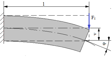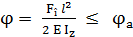 l [mm] – lungimea barei; v [mm] – deplasarea (săgeta) la încovoiere; φ [rad] – rotirea la încovoiere; va [mm] – deplasarea (săgeta) la încovoiere admisibilă; φa [rad] – rotirea la încovoiere admisibilă; Fî [N] – forţa de încovoiere; Iz [mm4] – momentul de inerţie axial;