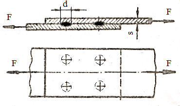unde: F reprezintă forţa exterioară; τafs este tensiunea admisibilă la forfecare a materialului cel mai slab; n - numărul punctelor de sudură; d - diametrul punctului de sudură |