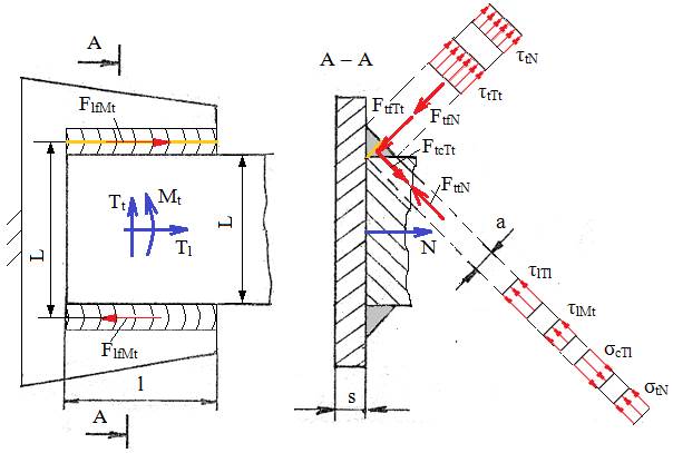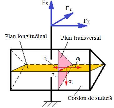 Ipoteze de calcul: - acţiunea forţei longitudinale Tl determină în cordonul de sudură tensiuni de forfecare longitudinale, τlTl; -