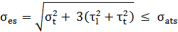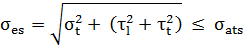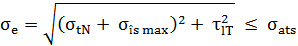 unde: σats = min(σr1, σr2)/c cu σr1,2 – tensiunile de rupere ale materialelor îmbinate; c = 1,25…2, factorul de siguranţă; tensiunile (σt, τl, τt) în cordonul de sudură se determină separat pentru solicitările simple în raport cu aria secţiunii critice longitudinală. - În practica de proiectare se foloseşte frecvent relaţia,