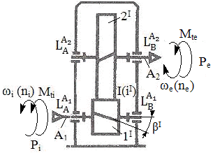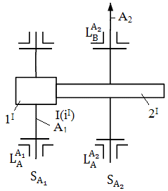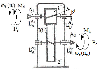 Angrenaje: treapta I – angrenaj cilindric cu dantură înclinată cu raportul de transmitere iI : 1I – pinion cilindric, 2I – roată cilindrică. Arbori: A1 – arborele de intrare, A2 – arborele de ieşire Lagăre:
