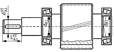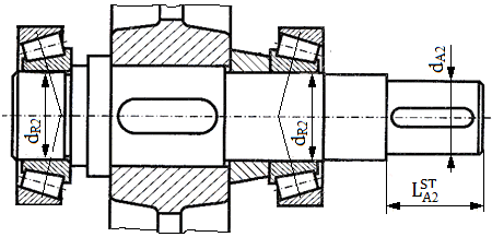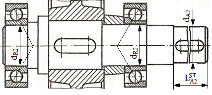 Reazemul A: reazem simplu (deplasările radiale în direcţiile Y şi Z nule); poziţionare în punctul determinat de intersecţia normalelor la căile de rulare cu axa arborelui (fer. ARD-P.3), cota B corespunde rulmentului ales (fig. TRD-P.1.2.6.2.2) |
