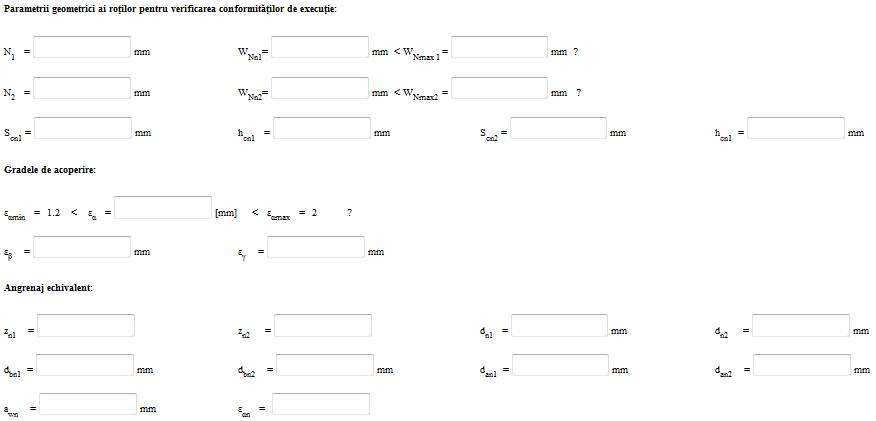 Pentru elaborarea desenelor de execuţie se va urmări: cap PRC-P.2.1.2 şi exemplele din fer. PRC-G.5 (arbore de intrare cu pinion conic cu dantură dreaptă) şi PRC-G.8 (arbore intermediar cu pinion cu dantură cilindrică), PRC-G9 (arbore de intrare cu pinion cilindric) şi PRC-G10 (roată dinţată cilindrică).