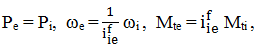 În cazul neglijării frecărilor (randamente unitare) parametrii cinetostatici (puterea, viteza unghiulară şi momentul de tosiune) de ieşire (indice e = 1,2,H) se determină în funcţie de parametrii cinetostatici de intrare (indice i = 1,2,H) cu relaţiile,
