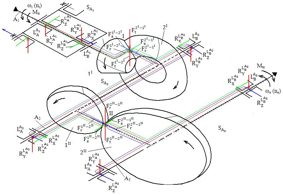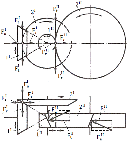 Fig. TRD-T.8.1.2.2 Fluxuri de forţe în reductoarele conico-cilindrice |