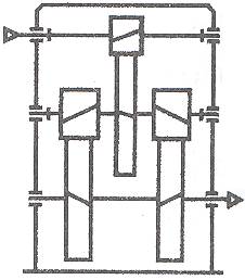 Semnul - arată că roaţile centrale 1 şi 2 au sensuri de rotaţie opuse. Condiţia de coaxialitate a roţilor centrale (1,2), z2 - z1 = 2 zs. Condiţia de montaj care impune ca dinţii sateliţilor să intre în golurile roţilor centrale, cu dantură la exterior respectiv interior, se sintetizează în relaţia, z2 + z1 = ns S, în care, ns este numărul de sateliţi şi N - un număr întreg. |